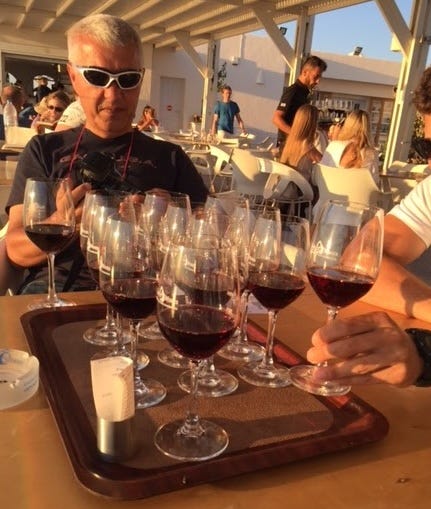 We were in Santorini in 2016 and enjoyed it very much. Here I am, tasting Santorini wines in July 2016: