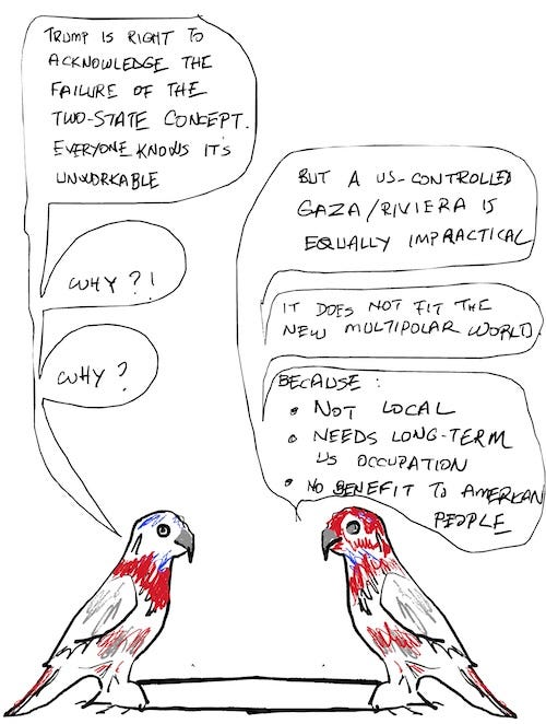 While acknowledging the failure of the two-state narrative is refreshing—since everyone knows it is unworkable—proposing a U.S.-controlled enclave in Gaza is equally impractical.