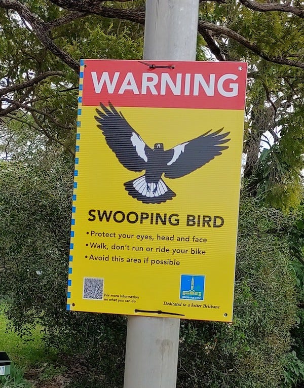 Havada süzülerek gelen kuşlardan koruyun kendinizi diyor. Bir tek bu Magpie denilen kuşlar yapıyor bunu. Bana saldıran kuşun resmi yok ama YouTube’dan seyredebilirsiniz isterseniz benzer Magpie ataklarını.