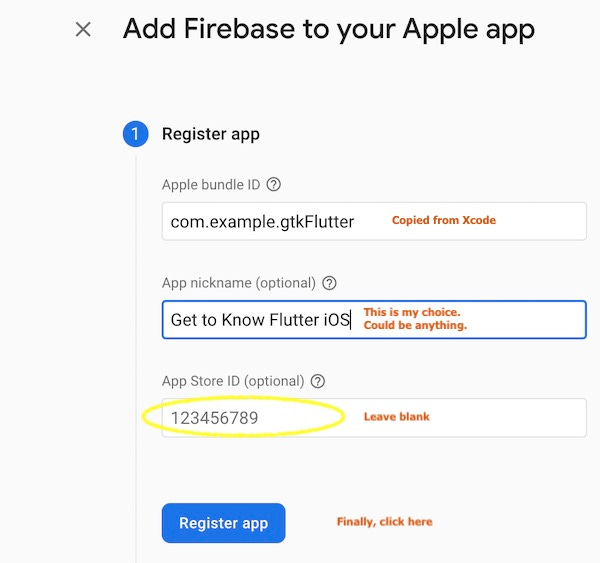 On Flutter Page 7, I used flutterfire configure command from a VS Code terminal window to connect an app to Firebase. When running flutterfire configure, I nominated the devices (e.g. iOS and Android). Now, following the tutorial, I will do each configuration manually using Firebase Console.