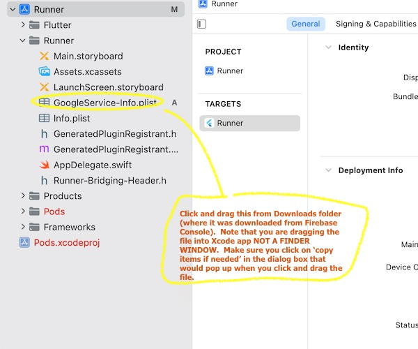 Then, in Step 2 on Firebase Console, download the configuration file into your Downloads folder and copy that file into Xcode app: