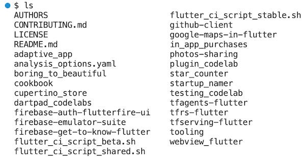 git clone https://github.com/flutter/codelabs.git flutter-codelabsThis cloned everything from github in a child flutter-codelabs folder. It looks like I did not need to create the first flutter-codelabs folder. Now I have two of them. Never mind.