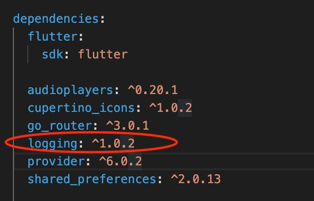 If using VS Code, adding this line to the pubspec.yaml file is equivalent to adding the package using flutter pub add logging.