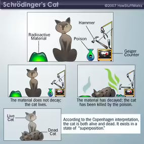 Şirödinger kedisi Herr Schrodinger’in teorisini açıklarken kullandığı bir düşünce deneyi. Kedi ile zehir şişesinin kapatıldığı kutuda radyoaktif bir madde de var ve bu maddenin radyoaktif dönüşümü ancak bir ihtimal olarak hesaplanabiliyor. Dönüşüm olursa bir mekanizma zehir şişesini kırıyor ve kedi ölüyor. Kuantum teorisinin şu anda kabul edilen yorumuna göre (Kopenhag yorumu), bu kutu sisteminin dalga denklemi ancak gözlem yaptığımız zaman yani kutuyu açtığımız zaman çözülüyor. Gözlem anına kadar kedi ne ölü ne canlı, ikisinin arasında bir yerde. Bu kurgunun kedilerle sınanması imkansız ama atomik parçacıklar bahis konusu olunca sınanabiliyor ve Nobel ödülü de bunun için verilmiş zaten.