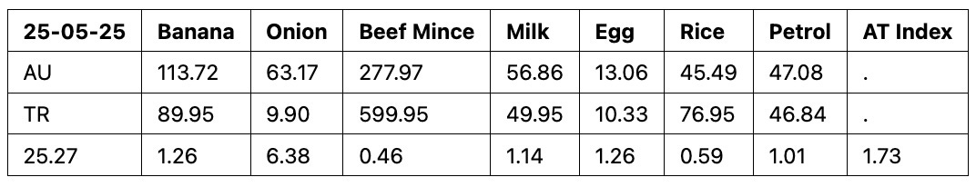 Based on my basket of goods, Australia is 53% more expensive this week compared to Istanbul. Both Coles (AU) and Migros (TR) prices are expressed in Turkish liras for the items in the basket on 11 May 2025. I converted Coles prices to Turkish liras at the exchange rate of 1AUD=25.27 TRY.